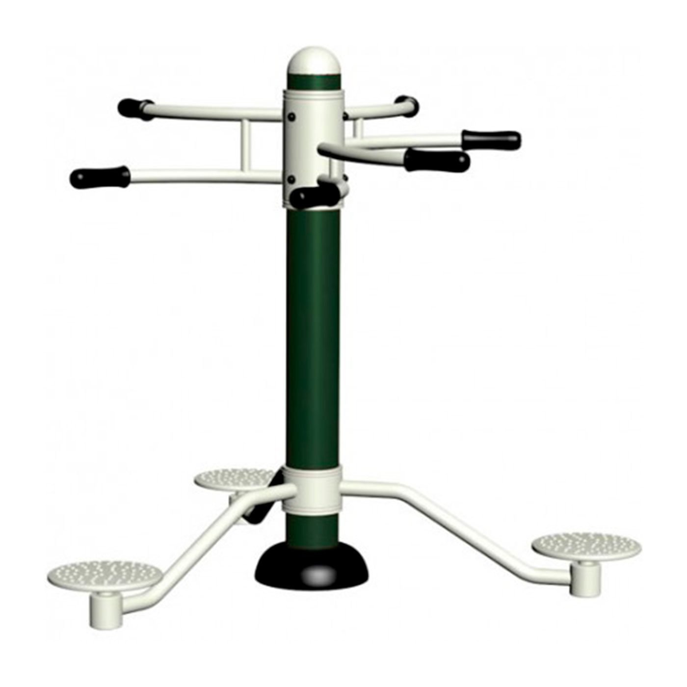 Mejora y desarrolla el funcionamiento de la cintura y la espalda. Relaja y mejora la movilidad y la flexibilidad de la zona lumbar. Toda la estructura está fabricada en acero al carbono resistente al uso en lugares públicos abiertos al aire libre. La tubería utilizada para esta estructura se recubre con pintura anticorrosiva que evita la oxidación.